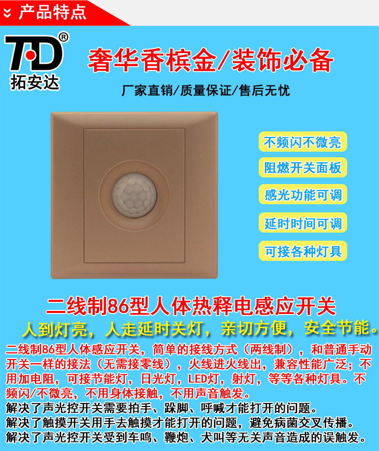 产品关键词: 拓安达,人体感应智能开关,