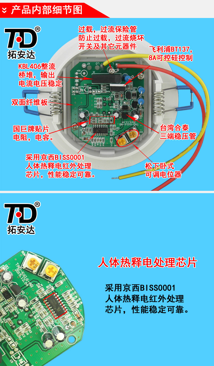 温馨提示: 以上是关于“拓安达嵌入式二线智能人体红外感应开关220V楼道”的详细介绍,产品由“深圳市拓安达电子有限公司”为您提供,如果您感兴趣可以联系供应商或者让供应商主动联系您,您也可以查看更多与“其他”相关的产品!