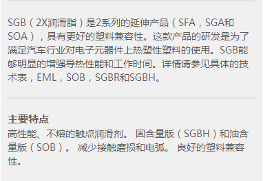 2X润滑脂不熔融,在垂直表面也不移动,耐候性优于润滑油,因此润滑脂更适于经常有重电弧产生的工业应用领域,如电池端子、刀开关、可变电阻器等。润滑脂也适用于长期、高速循环的开关,如汽车开关工业。