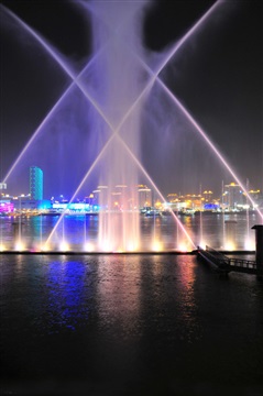 激光喷泉:配合大型音乐喷泉设置一排水幕,用激光成像系统在水幕上打出色彩斑斓的图形、文字或广告,即渲染美化了空间又起到宣传、广告的效果。适用于各种公共场合,具有*的营业性能4。